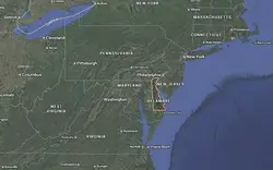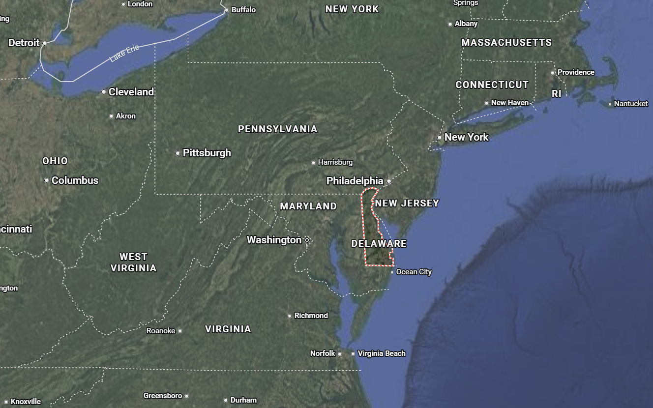 Where is Delaware located on the map of America?