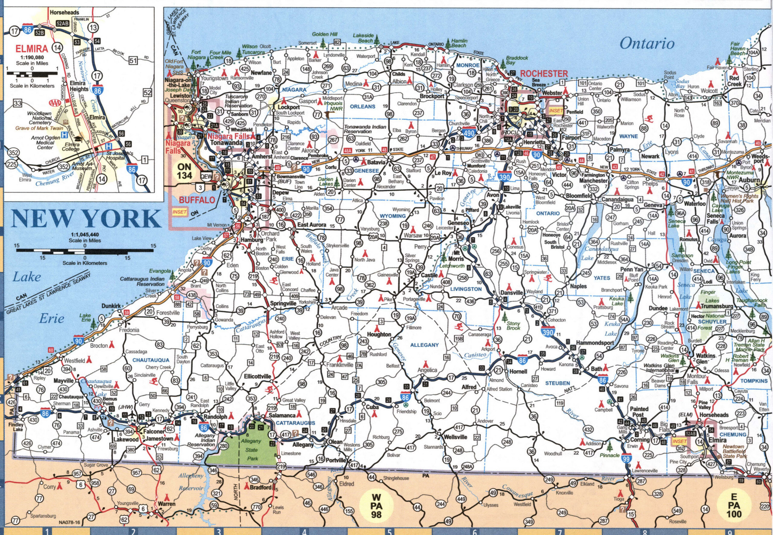 Maps of New York with cities and towns. Map of New York with county lines. Tourist map of New York cities