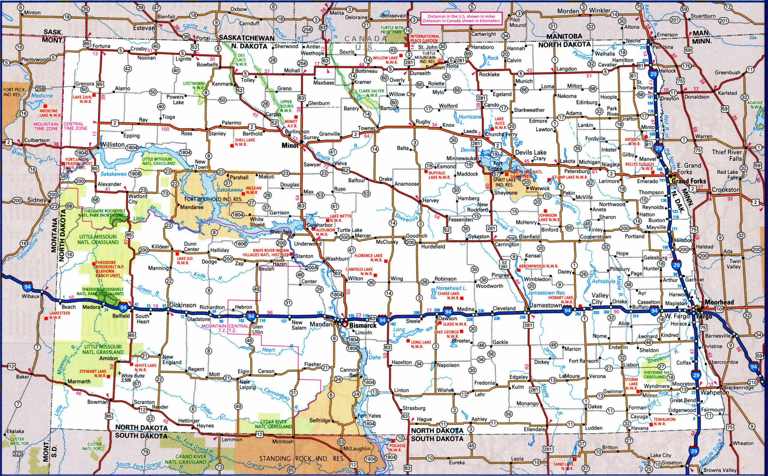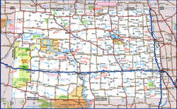 Maps of North Dakota with cities and towns. Map of North Dakota with county lines. Tourist map of North Dakota cities