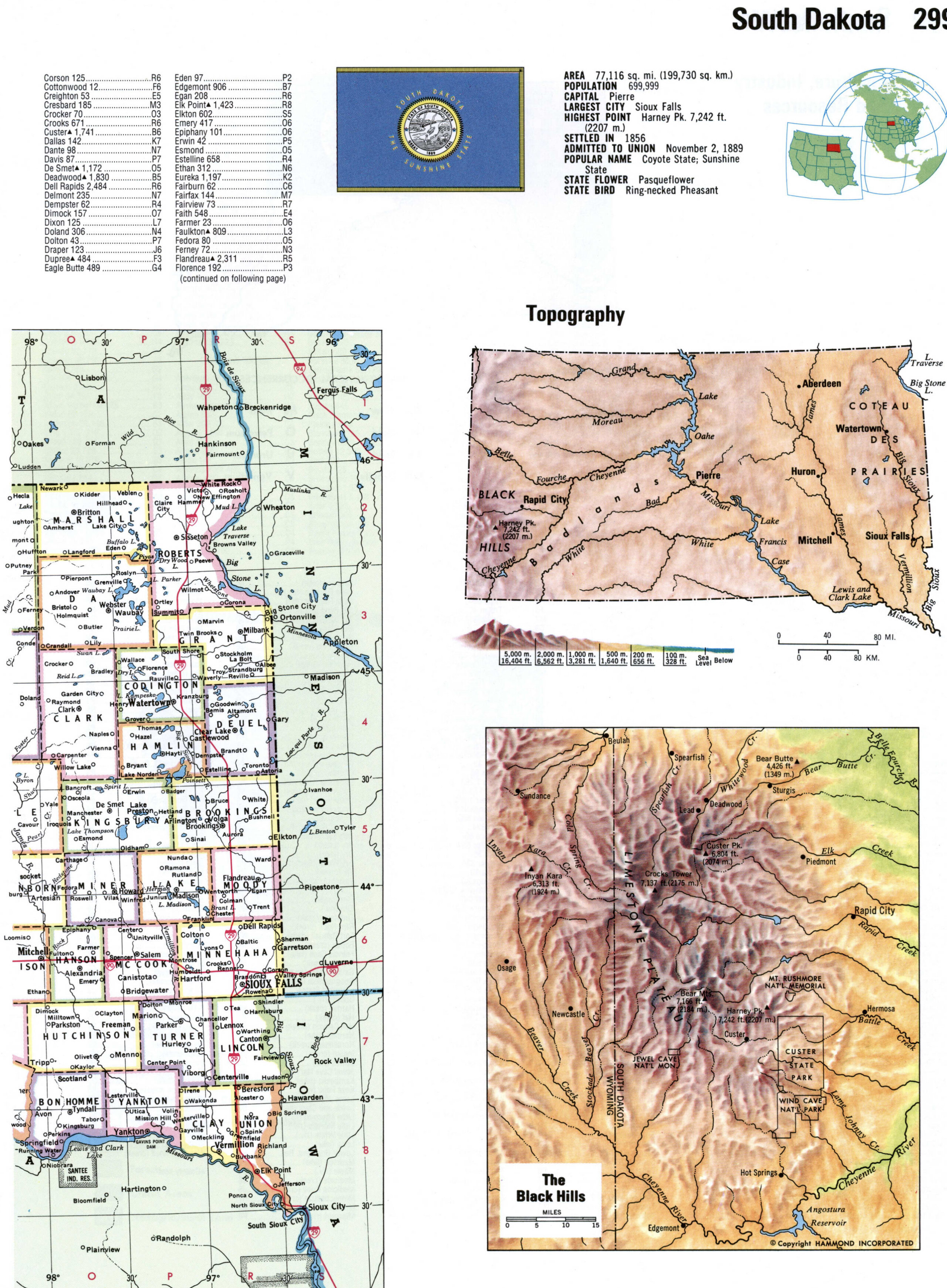 Maps of South Dakota with cities and towns. Map of South Dakota with county lines. Tourist map of South Dakota cities