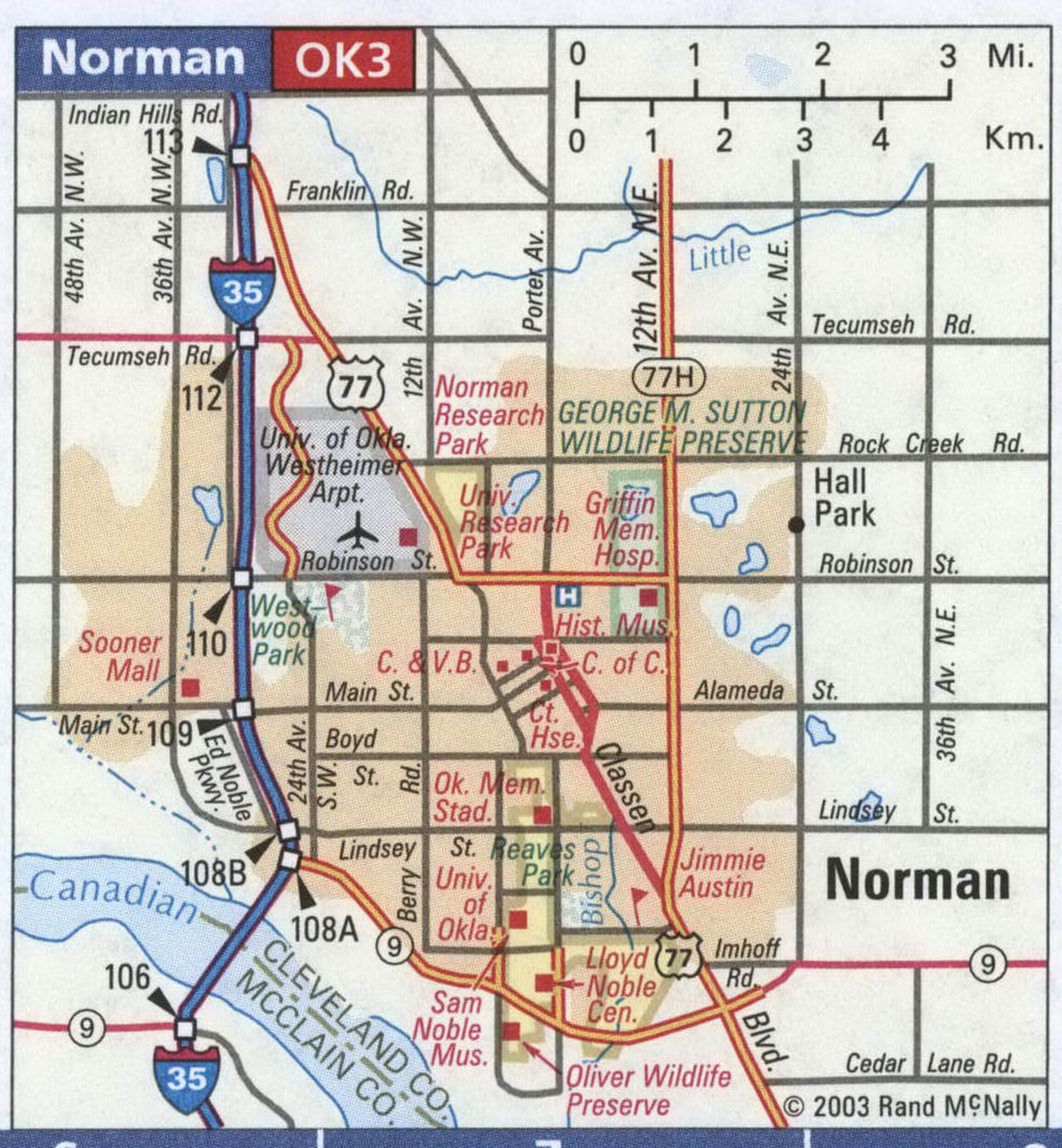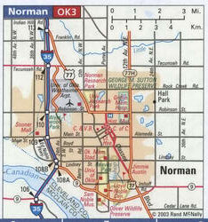 Norman on the US map. Tourist map of Norman, Oklahoma